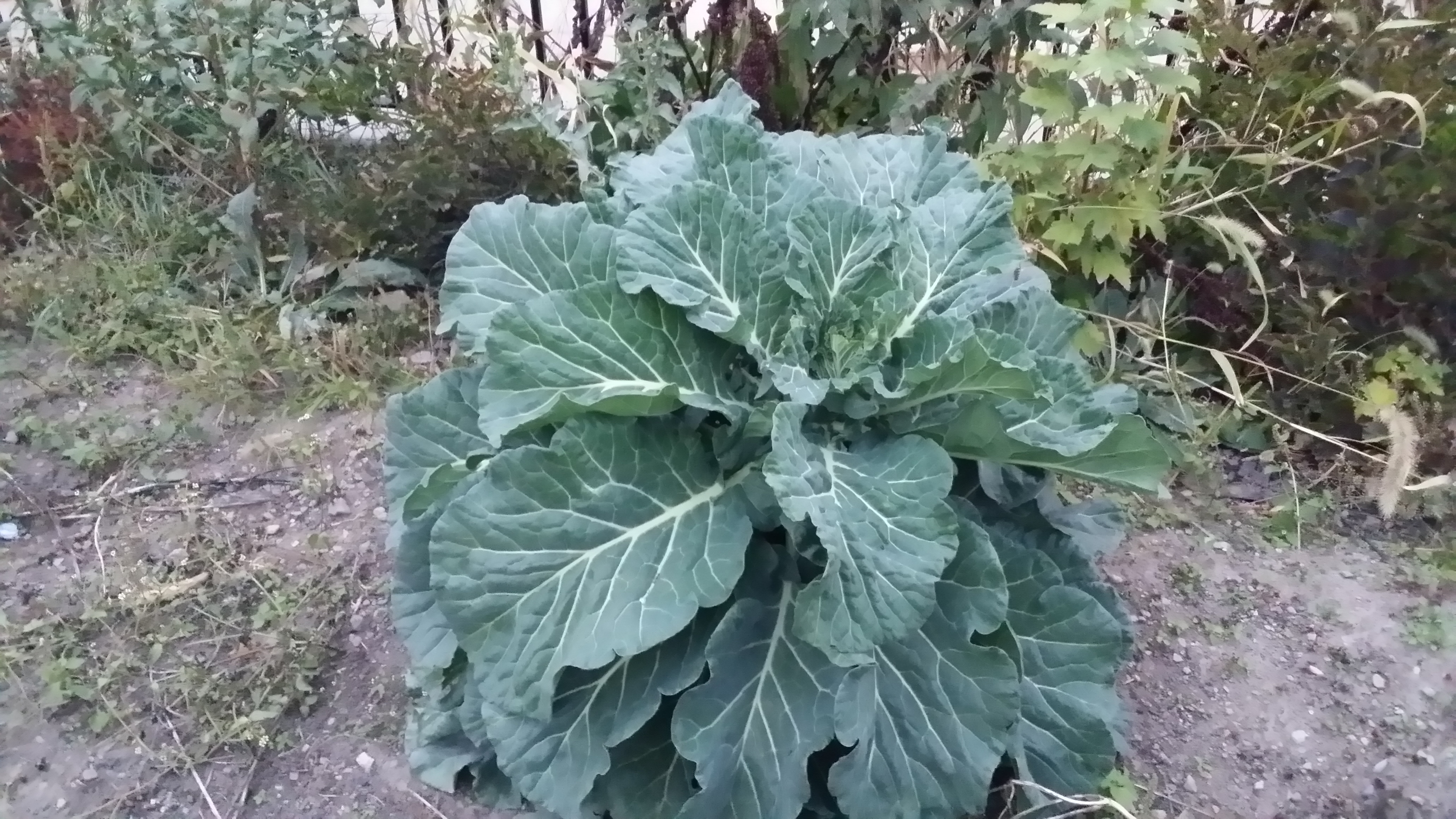 I am also practicing what I call lackadaisical gardening with some kale planted in my mother’s yard. I have watered it even less than I have the collards. It appears to not need my care or attention: